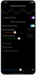 If you have an iPhone, you can download the Binaural Beats app for free. It is rated 4.7 stars and offers the ability to set your own base tone and see animated waves in real time. [11]